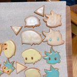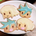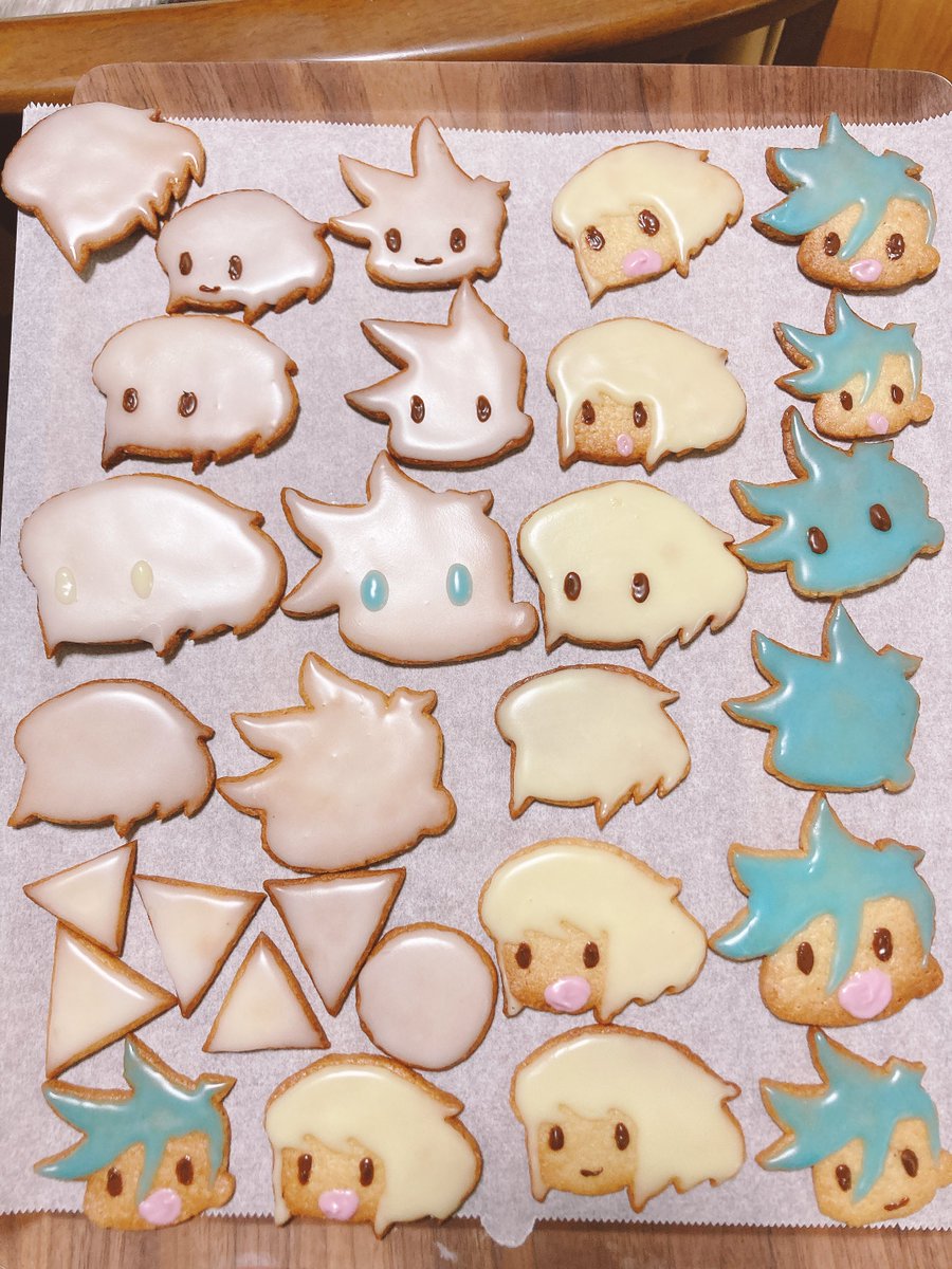 コリコガレモンアイシングクッキーつくた🍋🎶 めちゃくちゃ難しかったし疲れた(アイシングが) ちょっと焼け気味こんがり夏のコリコガになってしまった☀️🏝🎶 味はおいしかった 青色はめちゃくちゃ食欲減退する🤣