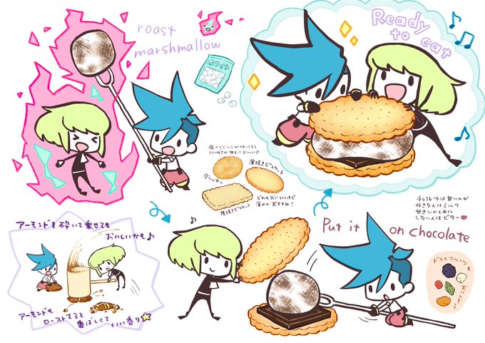 38 77 コリチャンとコガチャンがスモアを作る絵です 22/09/26 15:32