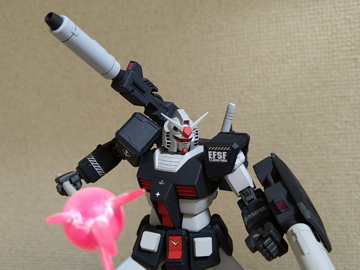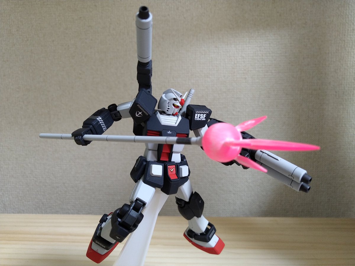 #オラたちの78ガンダム ずっと前に作ったHGUCリヴァイヴガンダムです🙂 腹部幅増し、雑誌付録の武器装備、プロトタイプカラーです ジャベリンビーム部のみMGのクリアパーツ使用しました #ガンプラ #ガンプラ好きな人たちと繋がりたい