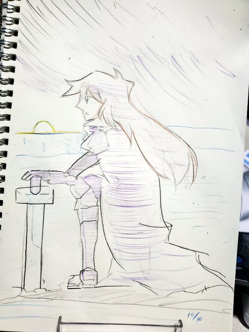 定期イラスト 『騎士』 夜明けなイメージで。 体調回復後ひさしぶりに描いたから デッサンがー #秋の創作クラスタフォロー祭り #オリジナルイラスト #絵描きさんと繋がりたい #深夜の真剣お絵描き60分一本勝負