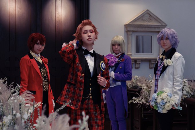 【twst cos】ゴーストマリッジ なりきり花婿 『タキシード隊もみんな揃ったことだし…そろそろ観念してもらおうか!』 ❤️:鳥居ナツ@ToriiCos 🍎:yuu @yuu9910s 🌹:KIRARA @kirara_otk 🏹:綵歌 📸:tea.@tea__cos ※撮影は感染対策を行いながら実施しました #麗yersチャペル