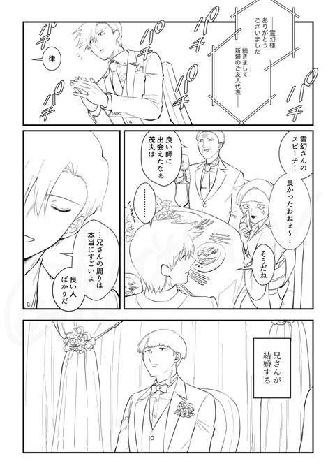 モくんの結婚式に参列する弟の漫画です ヘキです (1/2) ※シチュの都合で年齢操作 ※ブロマンスのつもりですが兄弟CPに萌えてるオタクが描いてます ※何でも許せる方向け