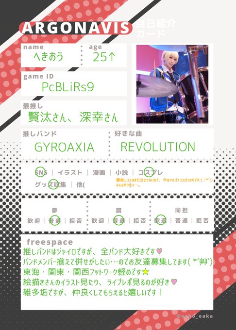 テンプレお借りしました! 雑多垢ですが、プロフ見て大丈夫そうな方、繋がってもらえると嬉しいです👑 ❤orRTで気になった方、ご挨拶うかがいます☺️ #アルゴナクラスタさんと繋がりたい #ナビゲーターさんと繋がりたい #アルゴナ好きな人と繋がりたい #アルゴナレイヤーさんと繋がりたい