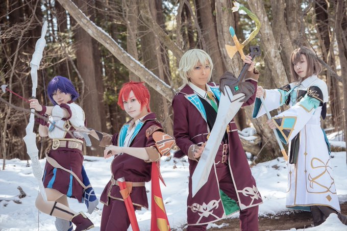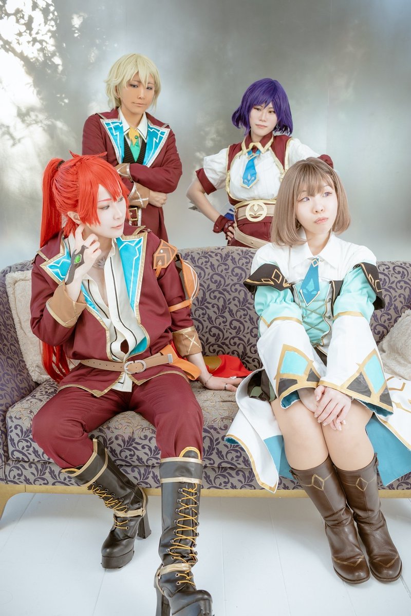 【コス】テイルズ オブ ルミナリア ブレイズ18期生 課外授業を終えて…(?) レオ:へきおう ユーゴ:かおる セリア:水無 ミシェル:菜田 カメラ:フィリップさん@Philip_camera #我ら源獣とともにブレイズ合わせ0226