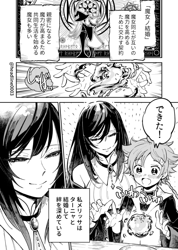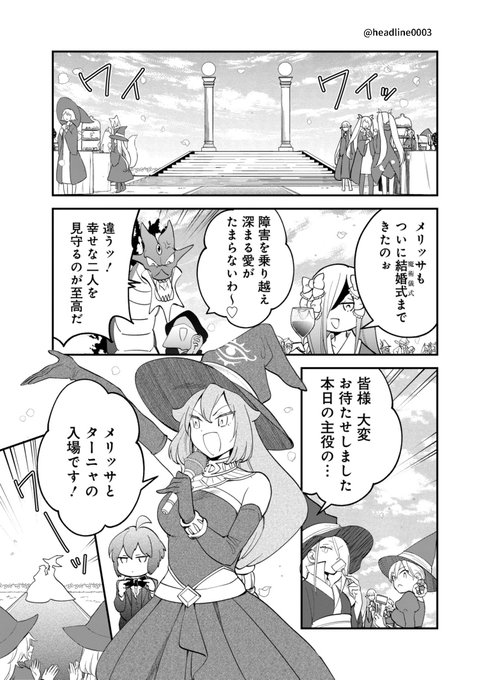 \📢ついに最終回📢/ #魔女ノ結婚 ✨第45話更新✨ メリッサの発言に驚くターニャと周囲。 魔女ノ結婚を通してメリッサとターニャが得たものとは…? 是非二人の結婚式を最後まで見届けてください✨🧙♀️🧙✨ comic.webnewtype.com/contents/witch…