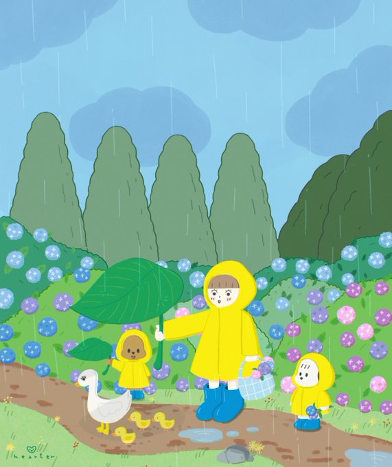One rainy day in June. #アジサイ #紫陽花 #Hydrangea #มาอวดโฮมุ้ #จิตรกรทุ่งคราม #illustration #イラスト #arttwt @Procreate