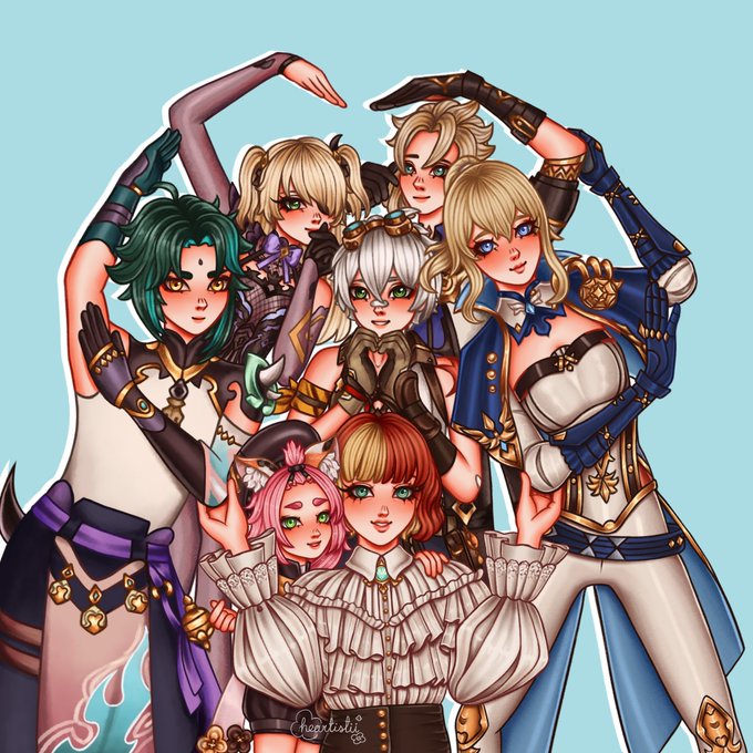 artstyle challenge with albedo fischl and zhongli 💞 #GenshinImpact #genshinimpactfanart #Albedo #Fischl #Zhongli