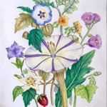 No.288(3) #英国クラシックの花々 編より 元々時間の掛かる線画が🐈⬛の邪魔でえらい時間が掛かってしまった。 天気が悪いと猫がよく寝て静かになる(笑) #大人の塗り絵 #ジェーン・ラウドン さん #藍晶完成品 #三菱880 888少々