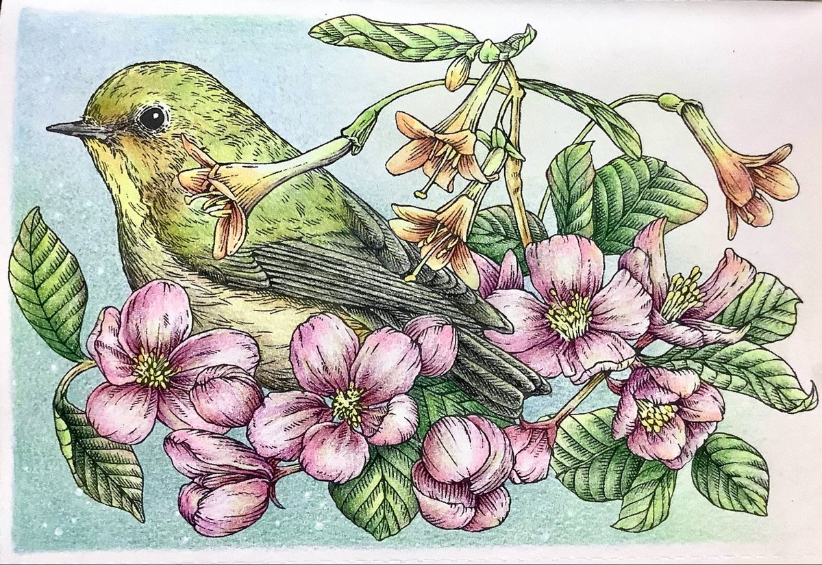 #2022年自分が選ぶ今年上半期の4枚 #大人の塗り絵 達成感が有ったからもっと枚数を消化してる気がしたのにそうでもなかった そしてほぼほぼ江種鹿乃子さん(笑) 色鉛筆は薔薇がカラトアクェレルのドライ あとは全部コーリン色鉛筆