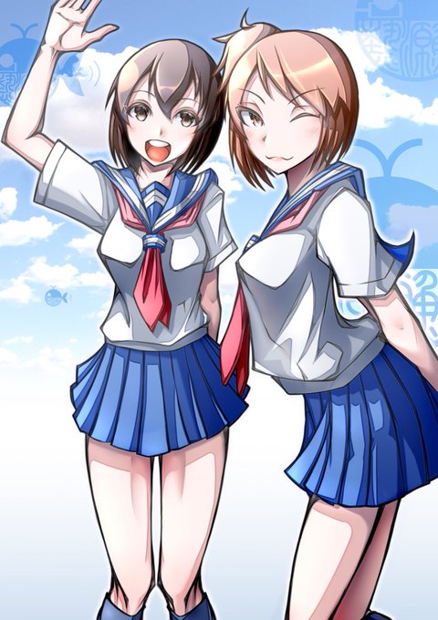 @Yama32hetarest お待たせしましたー!! 小春さんと千秋さんのお二人の一枚描かせていただきましたー!!!