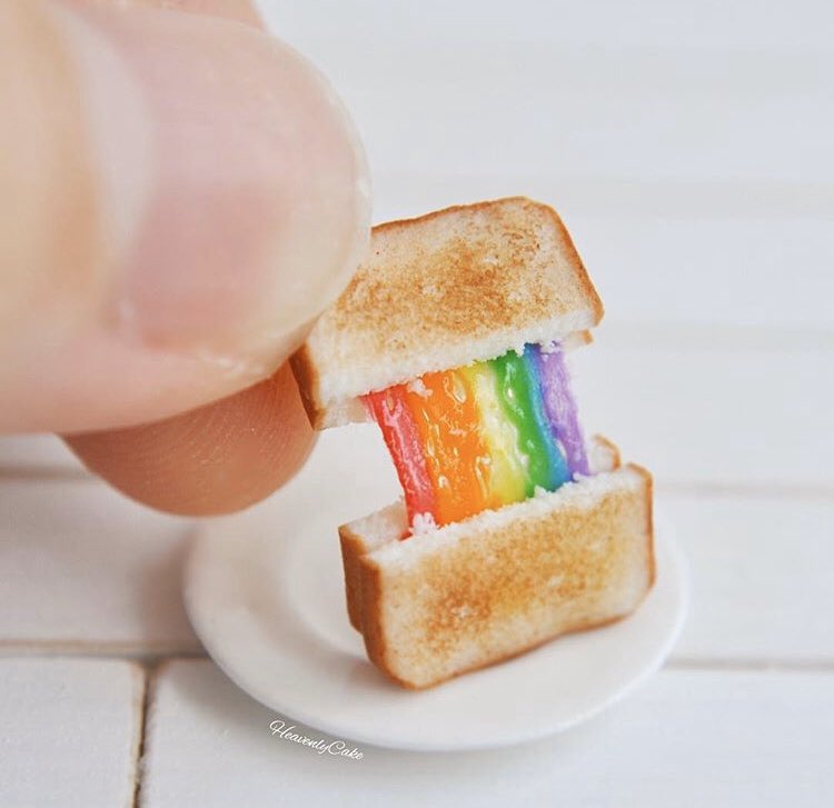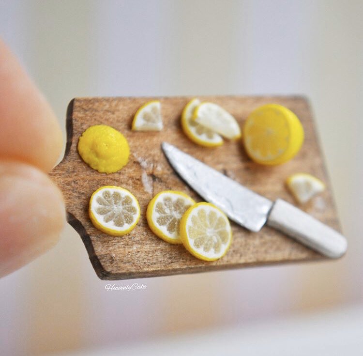 #しれっとすごいことを言う見た人もやる 粘土で作ったドールハウスサイズの食べ物です。 ・レインボーチーズトースト ・レモンのカッティングボード ・フルーツヨーグルト ・食べかけシナモンロール