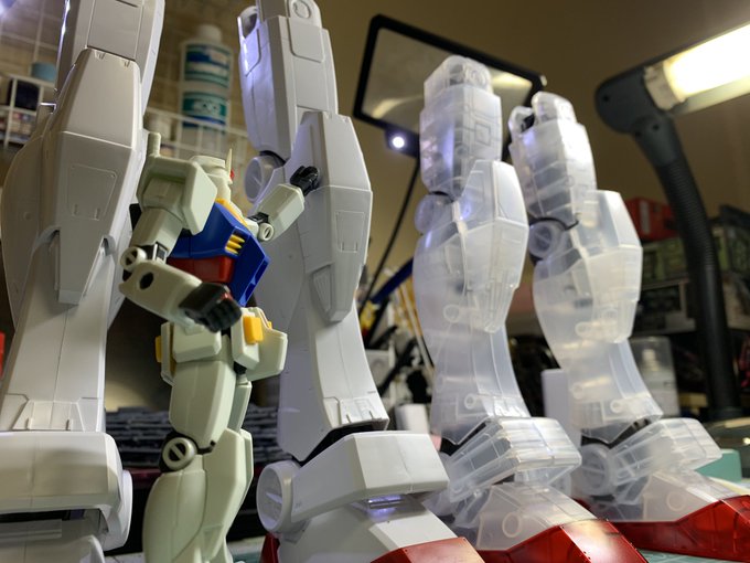 【今年の模活その3】 ジオンに鹵獲された陸ジムと大破した陸ガン。 ボロボロに加工するため削りまくって、机の上が大変な事になった(笑) #ガンプラ #今年作ったプラモ晒そうぜ #今年作った模型晒そうぜ