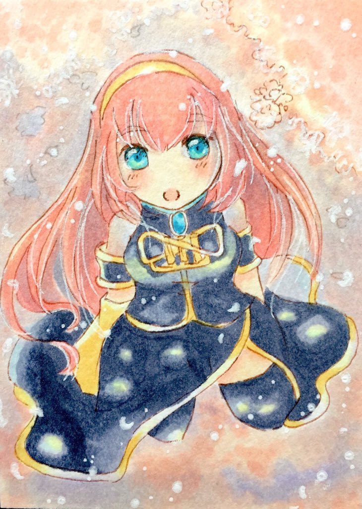 最近ボカロの絵落書きしかしてない ちゃんとしたのも描きたい、描かねば… ルカちゃんに無理な姿勢撮らせてる場合ではない… #大阪の人にしかわからんボカロ絵