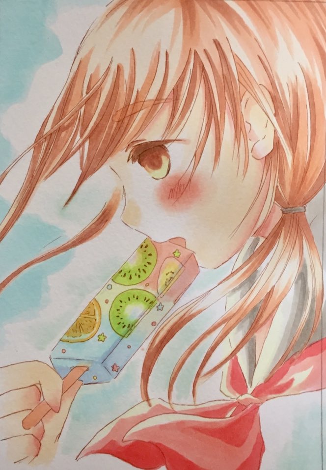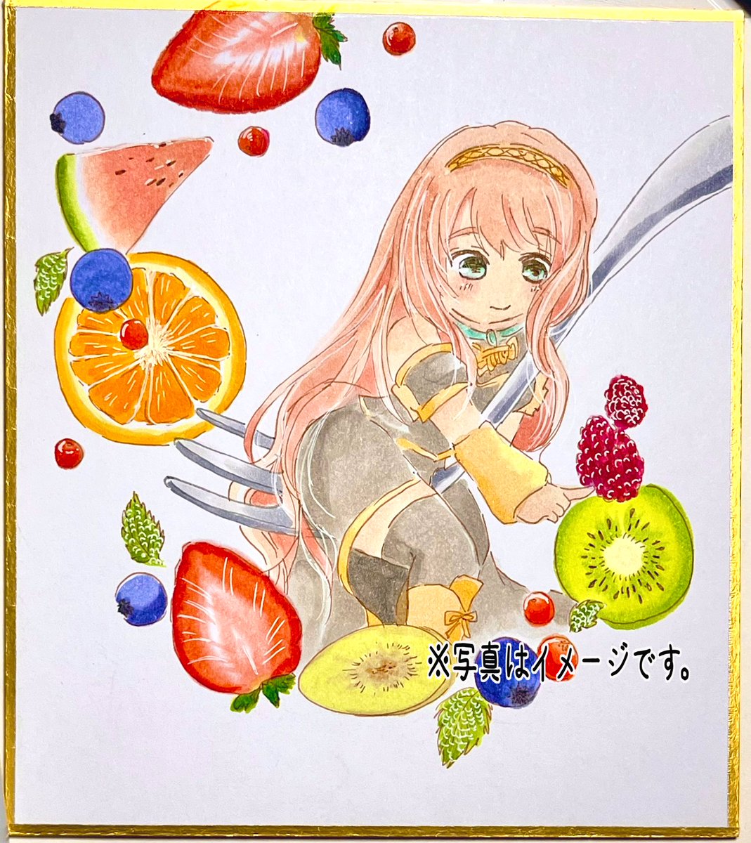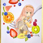出来上がった…!🥝🍊 フルーツ盛り盛りのルカさん色紙です。 もう少し描き足そうかな🤔 #コピック