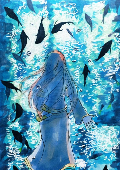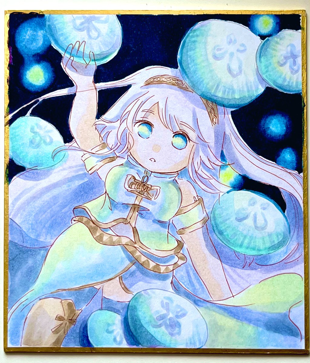 ふわふわくらげと漂うルカちゃん これも次のボーマス持って行く予定です🐟 #コピック