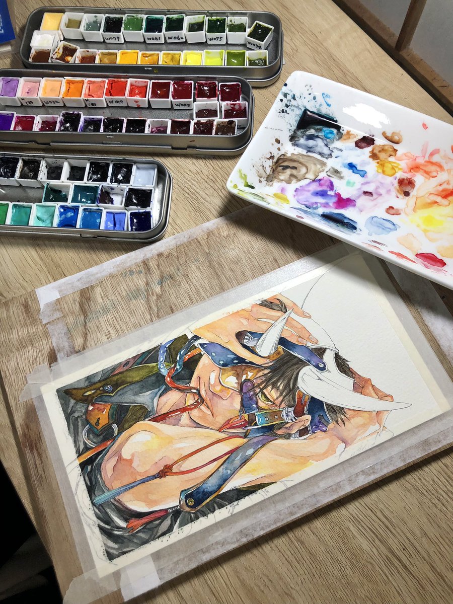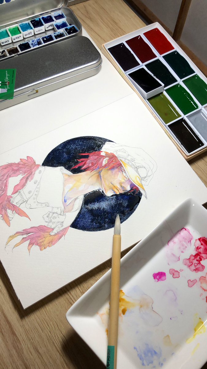 ラクガキ中〜(°▽°)🖌 いつもと勝手が違うんで、ちょい苦戦してますが、楽しいです(*゚▽゚)ノ #イラスト好きな人とつながりたい #水彩イラスト #ハルモニア