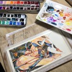 久々に、色塗り〜(*・ω・)ノ🖌 相変わらずのノープランで始めたんで、最初、色が散らばりまくってどうしようかと思った、、、 #イラスト好きな人とつながりたい #水彩イラスト