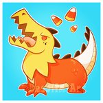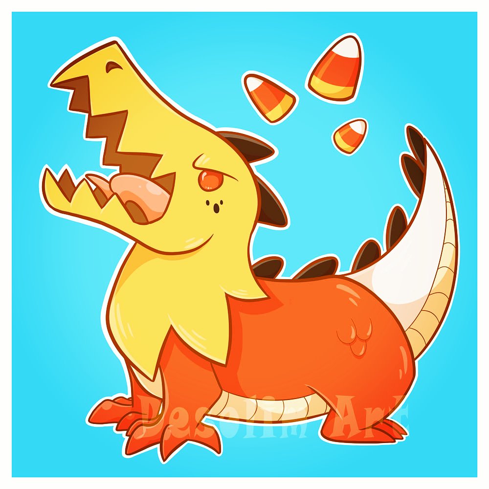 A candy corn gator-creature for prompt 2 of GOAC #2 candy corn/food item as creature #digitalillustration #digitalart #inktober #drawlloween #drawtober #artober #candycorn #alligatorart
