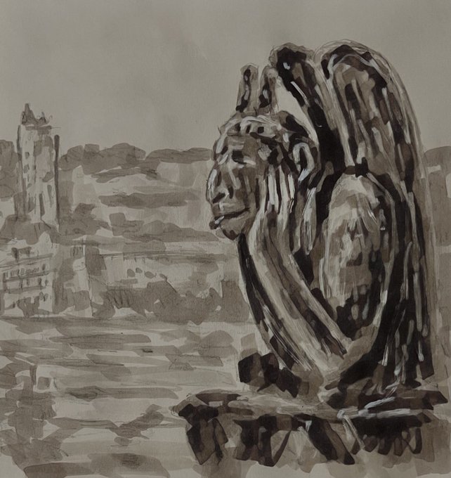 Today’s #inktober2022 prompt is #kind, so here’s #DevilsTower in #Wyoming, the main character of #CloseEncountersOfTheThirdKind. #inktober #inktoberday13 #movies #scifi #aliens #landscape #landscapeart #landscapepainting #landscapepainting #landmark