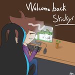Drawing for the first time on my pc ! Whoa it's so complicated I hope I'll get used to it ! TwT I like how it turns, he looks so cute >w< #stickybm #stickybmfanart @StickyBM