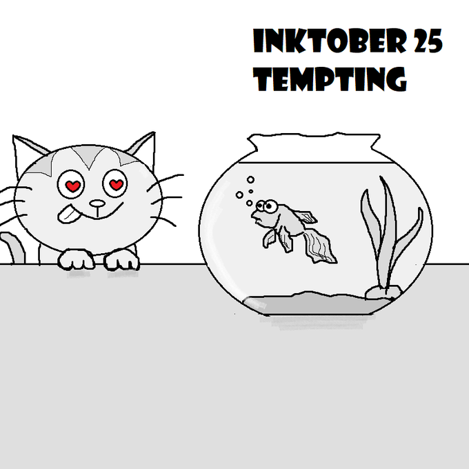 #Inktober day 25... Hmm I wonder if this is how my cat feels when she stares at my fish tank 🤔🤔 #inktoberday25 #inktober2022 #inktober2022day25 #inktober2022tempting #tempting