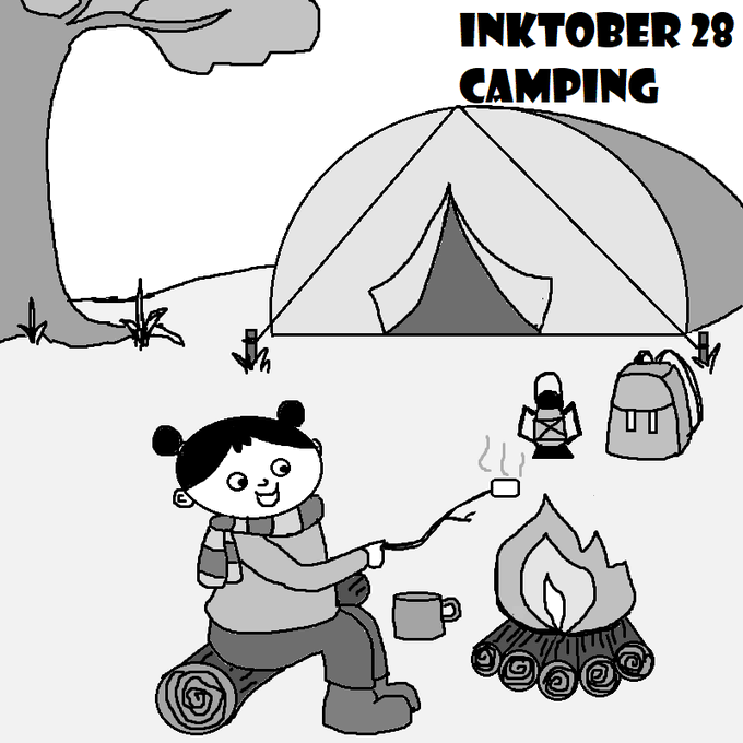 #Inktober day 28... Camping: The art of getting closer to nature while getting farther away from the nearest cold beverage, hot shower, and flush toilet. 🏕️🌲 #inktoberday28 #inktober2022 #inktober2022day28 #inktober2022camping #camping