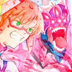 #呪術廻戦ファンアート #虎杖悠仁 #呪術廻戦 虎杖悠仁?を描きました〜 途中で結構やらかした感がありましたがなんとか立て直しました😌 基本的にクサカベで、あとは絵墨明と右目の部分だけポールルーベンス蛍光赤だけ使いました。