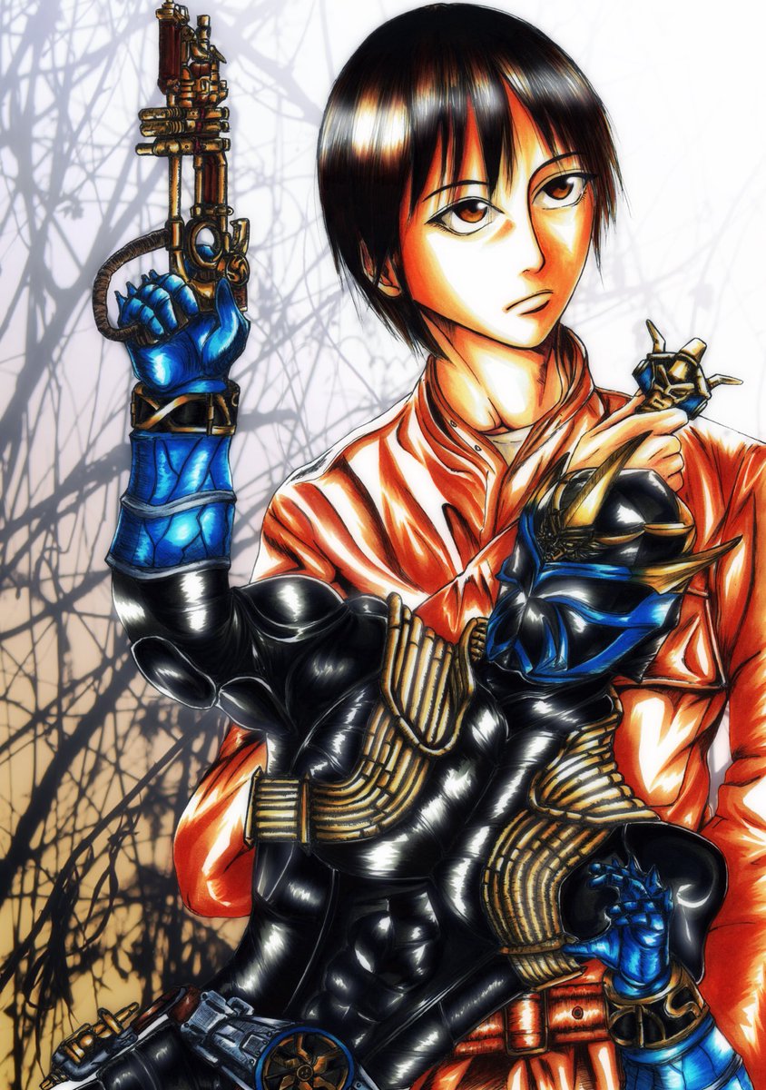 「仮面ライダーゴースト」のムサシ魂を描きました。 ゴーストに登場するライダー達は、英雄の魂が宿った眼魂(アイコン)の力を借りて戦う事が出来るという設定。 このムサシ魂は、宮本武蔵の魂が宿っており、タケル殿が頻繁に活用していました。 #仮面ライダーゴースト