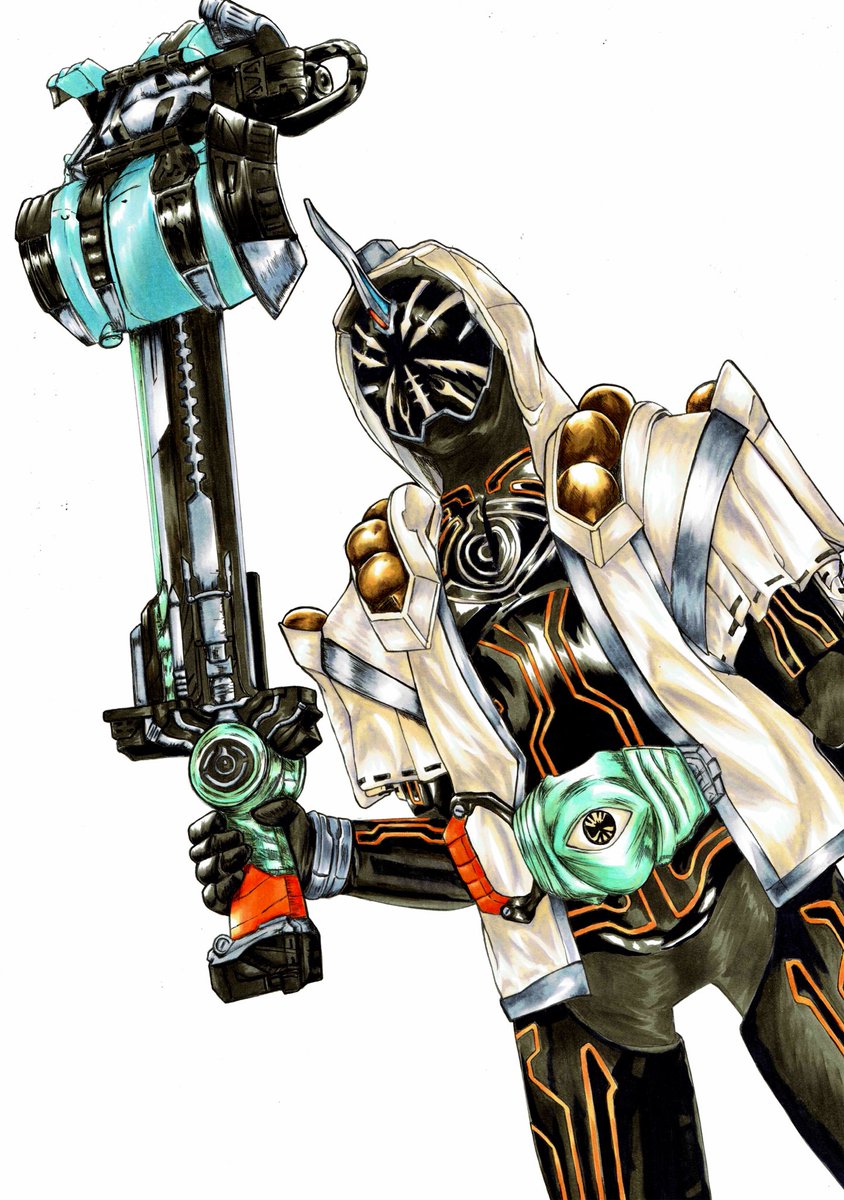 「仮面ライダーゴースト」に登場する敵の1人・ジャベルを描きました。 序盤に登場し圧倒するも、強化フォームで復活したタケル殿に倒され、出番はそこで終わり。と思いきや、後に復活し、意外な成長を遂げました。 まさかあんなに愛される人になるなんて。 #仮面ライダーゴースト