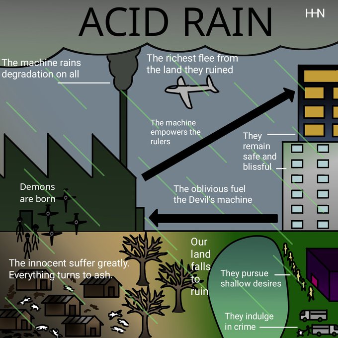 #revotober Day 25 - Acid Rain This prompt was hard to come up with ideas. At the end I just tried to make it look like a crappy science diagram, heh. #inktober2022 #WhatsHappeningInMyanmar