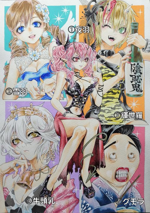 #うちの子によるキャバクラがありましたら誰をご指名しますか このタグの為に新しく描いてみました🍸👠✨ お好みの嬢はおられますでしょうか、お優しい紳士淑女の皆様、選んで頂けますか? コメ欄に捕捉ありです💖