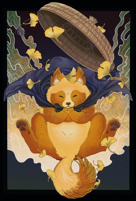1 8 #銀杏 #狸 #イラスト #和風 最近まともに絵を描けてないからトートバックにしたときのやつ載せます。 22/12/18 20:20