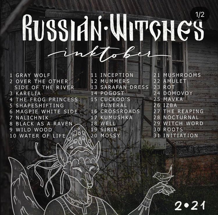 #russianwitches_inktober Mushrooms, Kumushki, Sirin the Bird and Window Our debuffed twitter is soooo slow, it's so hard to post here regularly #inktober2021 #inktober #ArtistOnTwitter