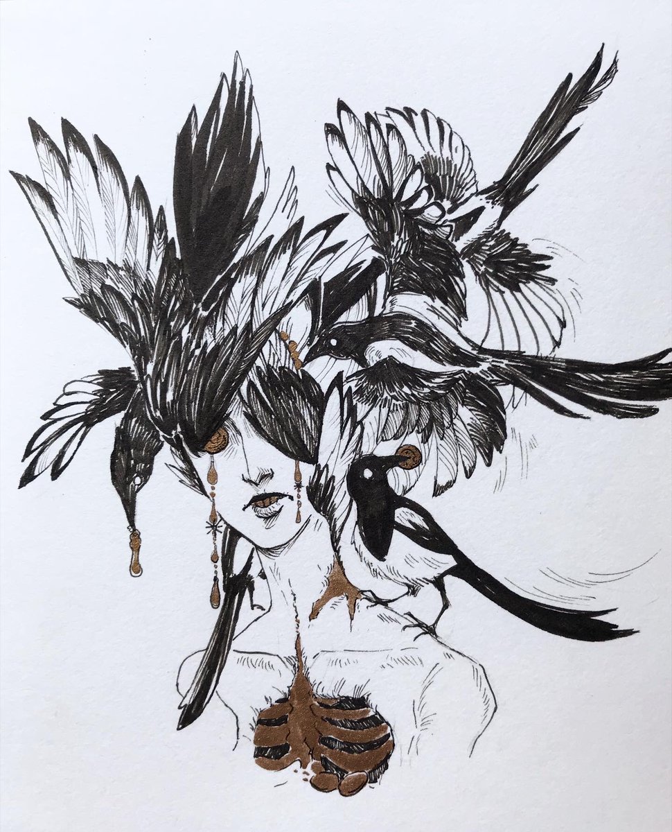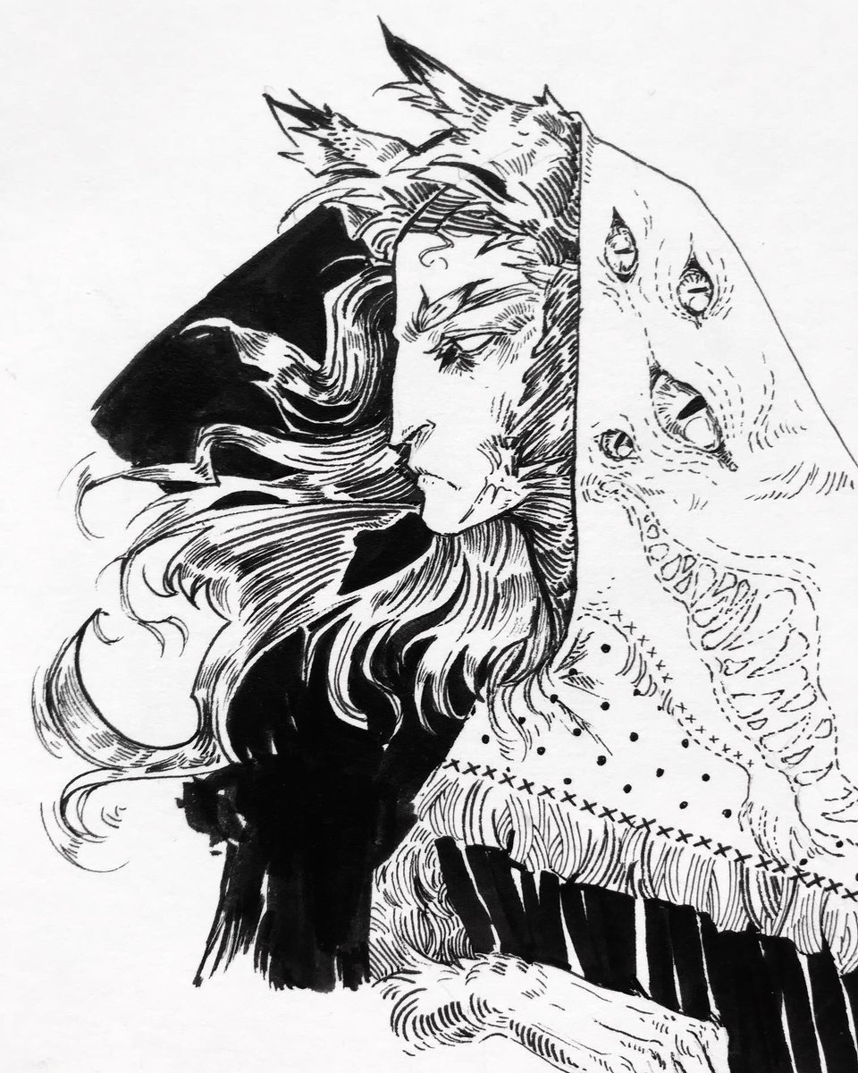 #russianwitches_inktober 5.Shapeshifting Guess what the animal🖤 #inktober2021 #Inktober #ArtistOnTwitter #art
