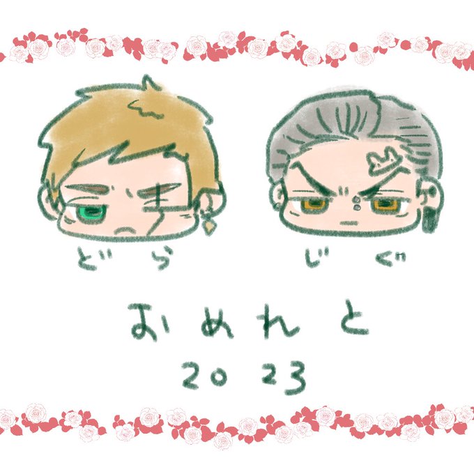 1 6 あけおめ絵ですー。 潰れたまんじゅうと言わしめたデフォルメでゆるーぅく描きました。 23/01/02 13:52