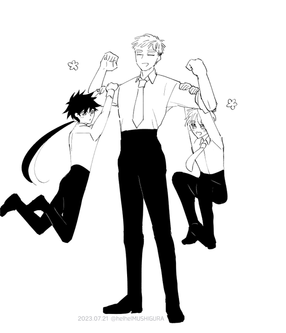 4 11 #落書き 偶に男子高校生らしくバカやってて欲しいね、学園トリオ。 あとド兄貴絶対いいお父さんになる(学内調) 23/07/21 23:51