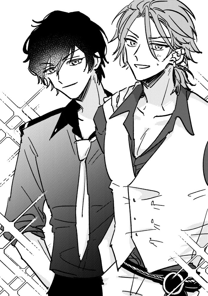 🌹「こんな所で抱きつくな」 🍃「いやいや、駄目だろ!」 🌹「?」 🍃「お願いだから、何か着ててクダサイ・・・!!」 #ガスマリ_ワンドロワンライ お題:バカンス +2hくらい描いちゃった🤤