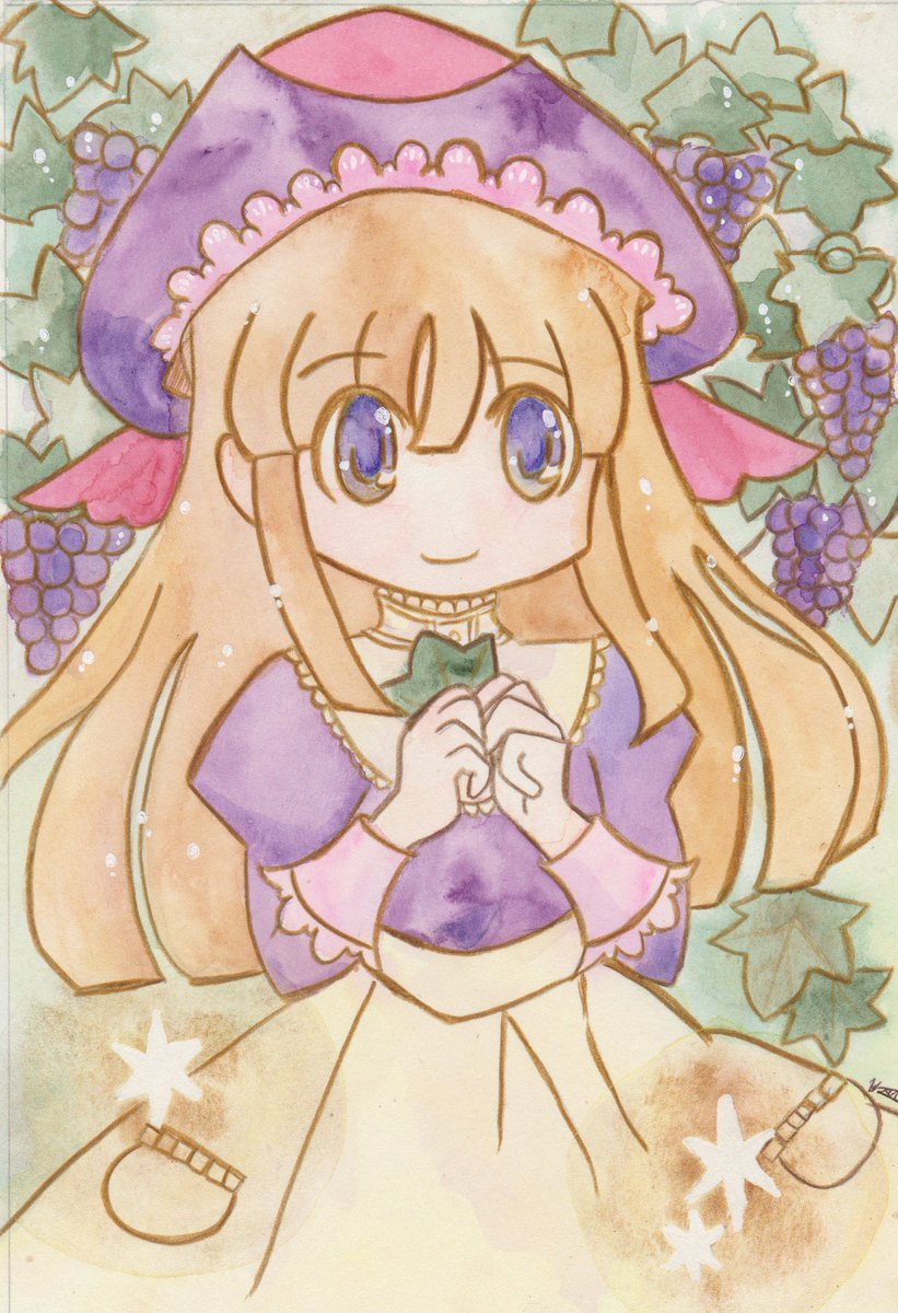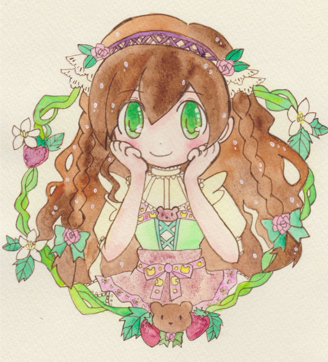 🍇Merlot🍇 創作の女の子です。名前はメルロ。葡萄をイメージしたカントリースタイル。 #透明水彩 #アナログ絵