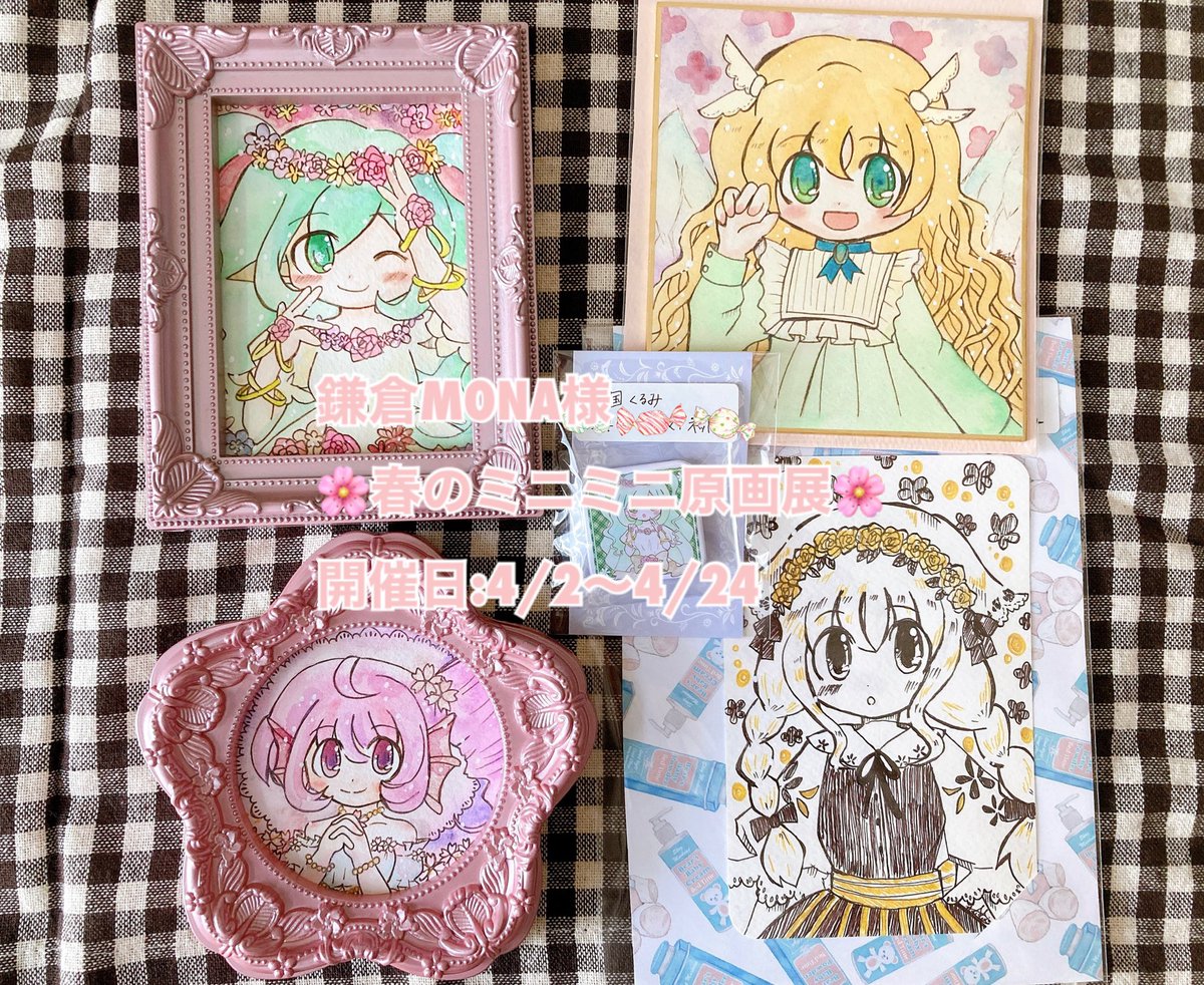 明日からの展示会のお知らせ 鎌倉MONA様(@kamakuramona ) 🌸春のミニミニ原画展🌸 ●開催日:4/2〜4/24 (期間中の木〜金、祝日のみ開催します) ●時間:11時〜17時 ●額装原画:2点 ●物販:缶マグネット、色紙ドローイング お近くの方は是非✨遠方の方は通販対応もありますので宜しくお願い致します✨