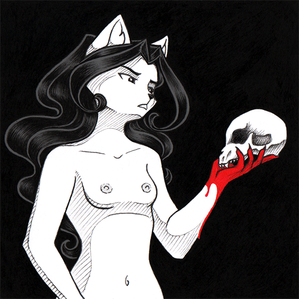 25th KNItober theme : foe Friend or Foe ? Contrary to Viktor, Bianca hasn't a conflictual relationship with her Entity... #OCtober #Drawtober #Drawtober2020 #Inktober #Inktober2020 #OEtherium #BlackAndWhite