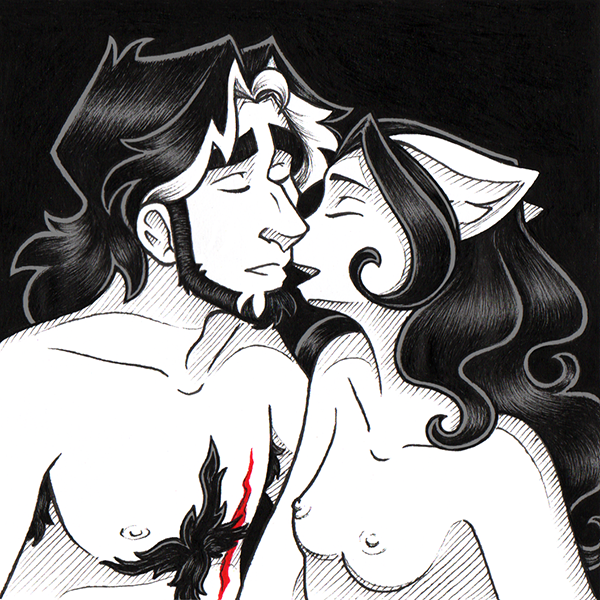 27th KNItober theme : silence Oops, I did it again : nudeslav and nudekitty ๐๐ #OCtober #Drawtober #Drawtober2020 #Inktober #Inktober2020 #OEtherium #BlackAndWhite