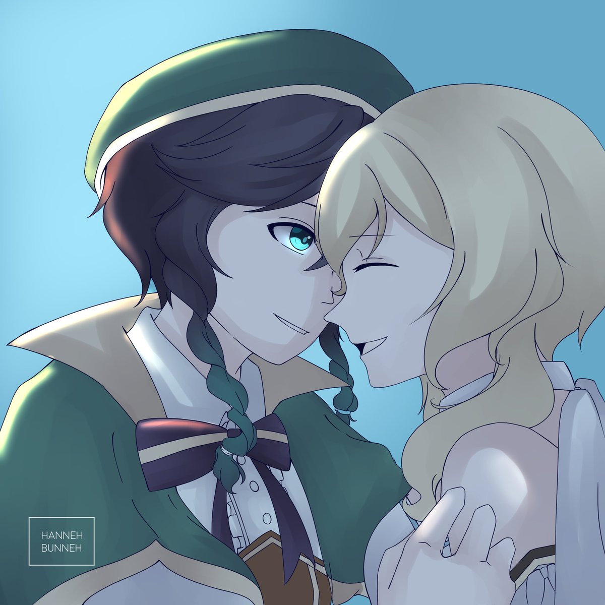 Lineart + Flat colors done! (WIP) #genshinimpactfanart #Zhongven #zhongli #venti #zhonglixventi #genshinimpact #原神 twitter.com/hanneh_bunne…