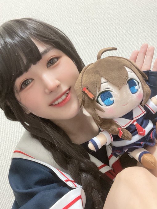 時雨ちゃんぬいぐるみとツーショット撮るオタク