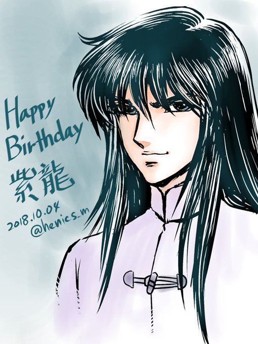 だいぶ前の、コピー本のフリートークの隅っこに描いたものに、落描き程度に色をつけただけなので、タグ使うかどうか迷いましたが…賑やかしに。 紫龍さんお誕生日おめでとうございます。 #龍星座の紫龍生誕祭2018