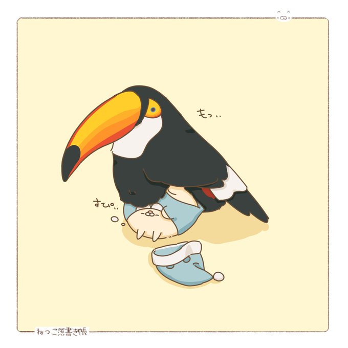 4 47 #変ねっこ #illustration オオハシに埋もれるちびねっこ 23/04/08 22:02