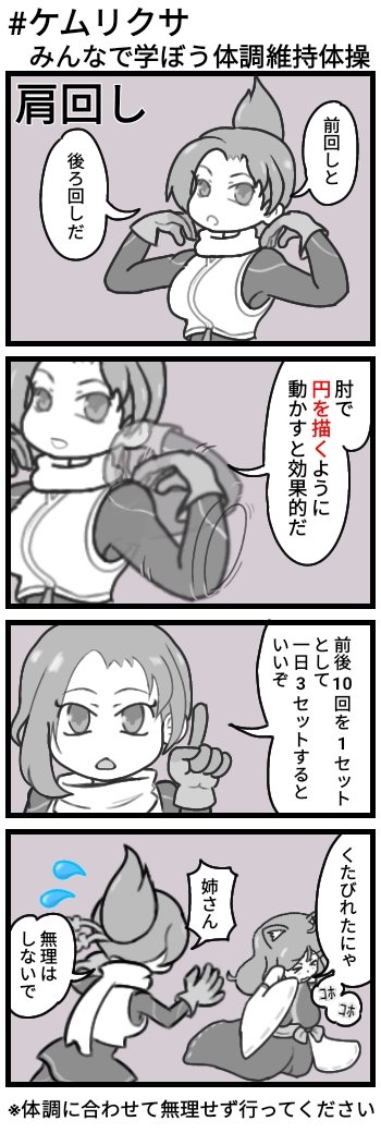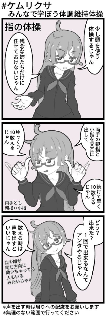 1都3県に緊急事態宣言が再発出されました。 不要不急の外出自粛が求められると運動不足が懸念されますので、ちょっとした運動を、思い出した時にでも、再掲ですがよろしければ是非~ #ケムリクサ健康班