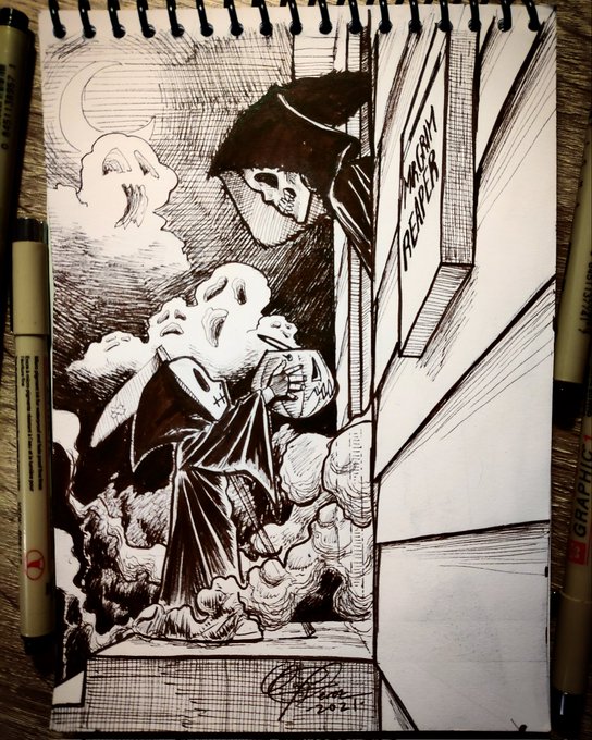 7. FAN: with the Grim Reaper's biggest one! #inktober #inktober2021 #artchallenge #challenge #artist #art #ink #inks #inking #sketch #sketching #sketches #marker #markers #original #originalart #originalcharacter #oc #comicart #drawing #drawings #horrorart #spooky #halloween