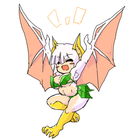 数日前流れてきてたコウモリの羽の話を思い出しながらちっともそれに忠実でないコウモリ娘を落書きしている ある程度はしょったりデフォルメしたりしないと人間型キャラとしては動かせないもんなあ