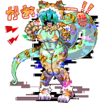 去年も牛柄ビキニの描き納めカメレオンちゃんでやったなーと思って今年も虎柄の描き納めはカメレオンちゃん。がおー