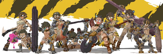 9 25 #自分の代表作だと思う絵を一枚だけ選んでみよう これで1枚っていうのズルいだろうけどサイバー蛮族ネタのこれとかどうだろう… 23/06/06 18:52